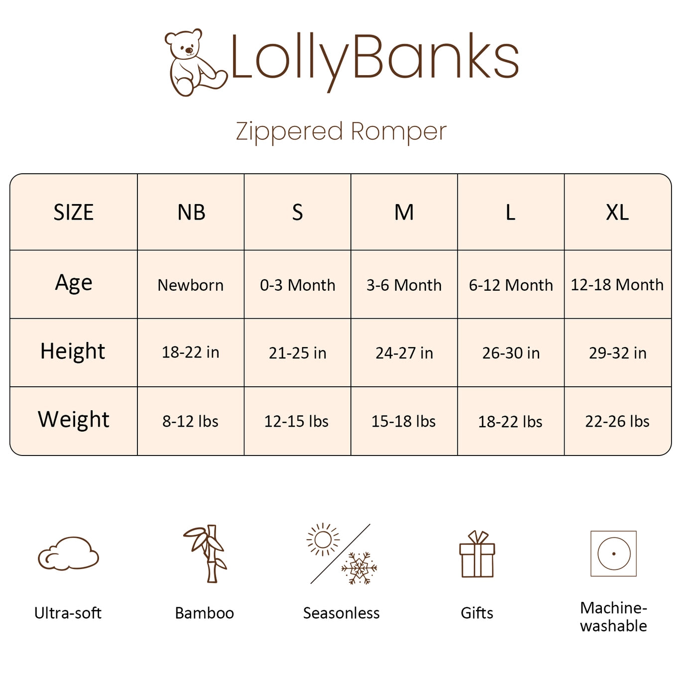 Soft & Breathable Fabric – Keep your baby cozy all day, free from harmful substances, and gentle on sensitive skin. Stretchy Comfort – Stretchy fabric ensures easy movement and long-lasting fit as your baby grows. All-Season Wear – This breathable onesie is perfect for every season. Its exclusive LollyBanks prints make it an ideal baby shower or special occasion gift. Convertible Sleeves & Legs – Fold-over cuffs and foot openings offer versatility, keeping hands warm or allowing free movement. Convenient Diaper Changes – A premium 2-way Y.K.K. zipper allows quick, hassle-free diaper changes, ensuring comfort and saving time.
