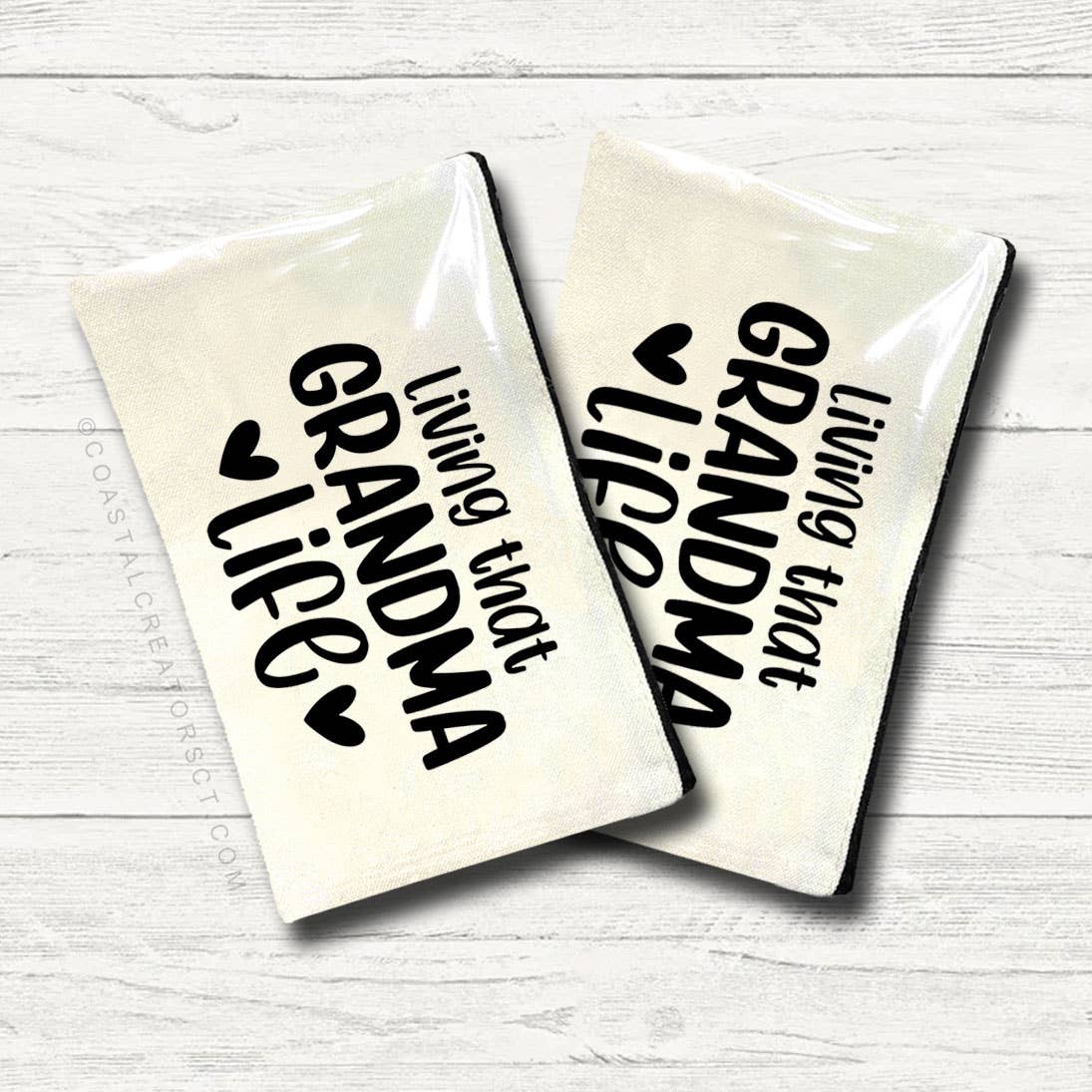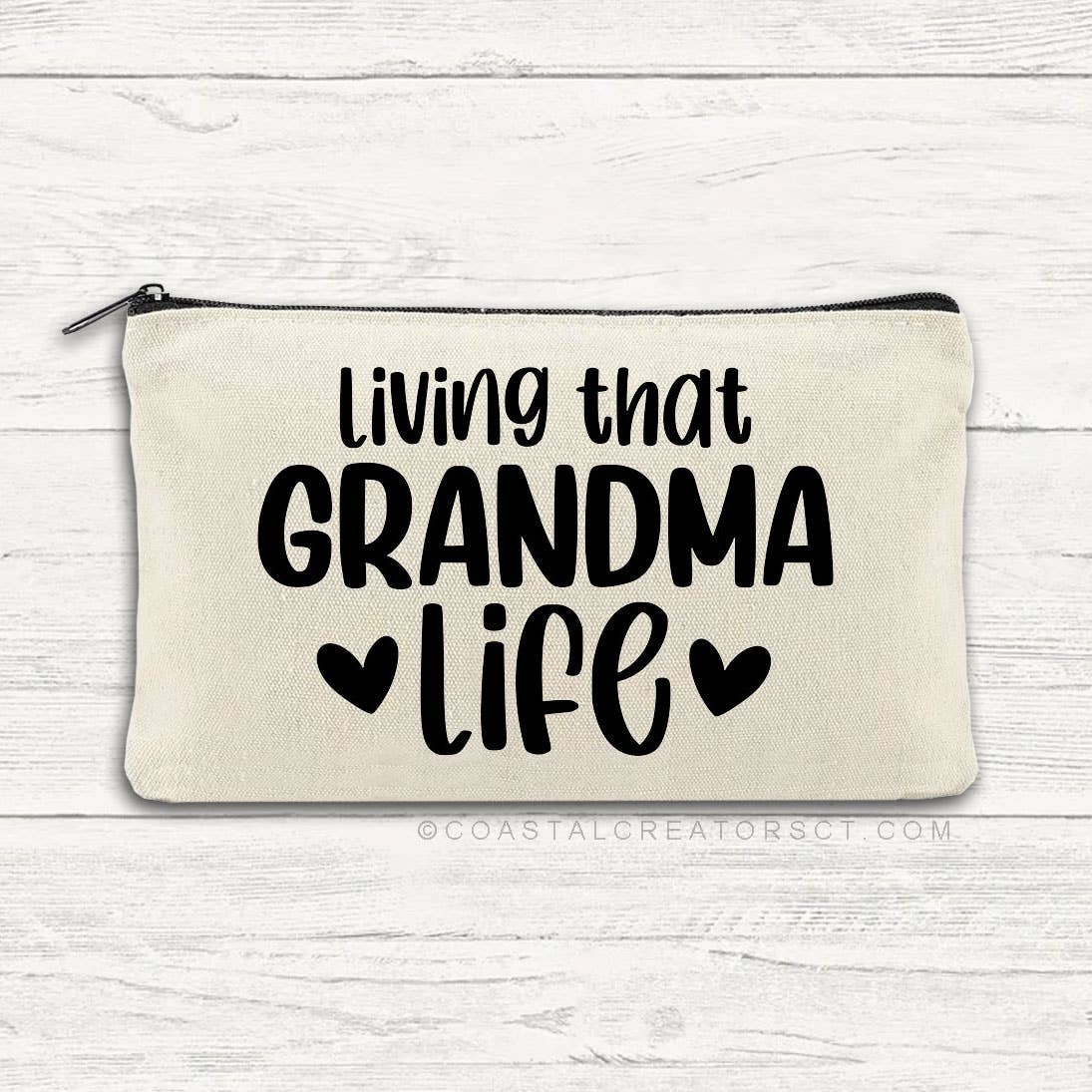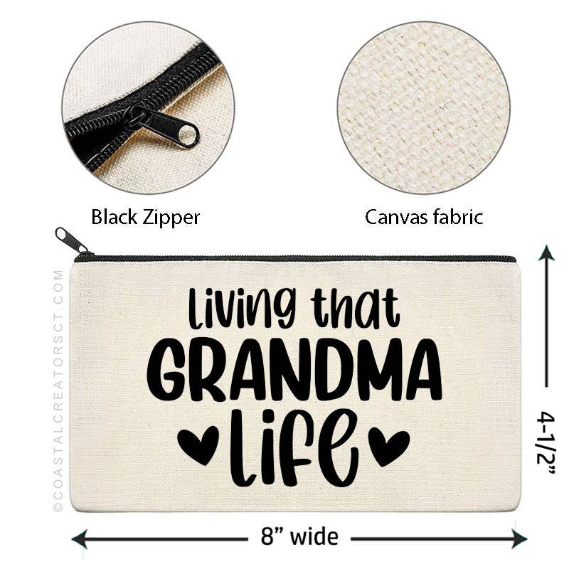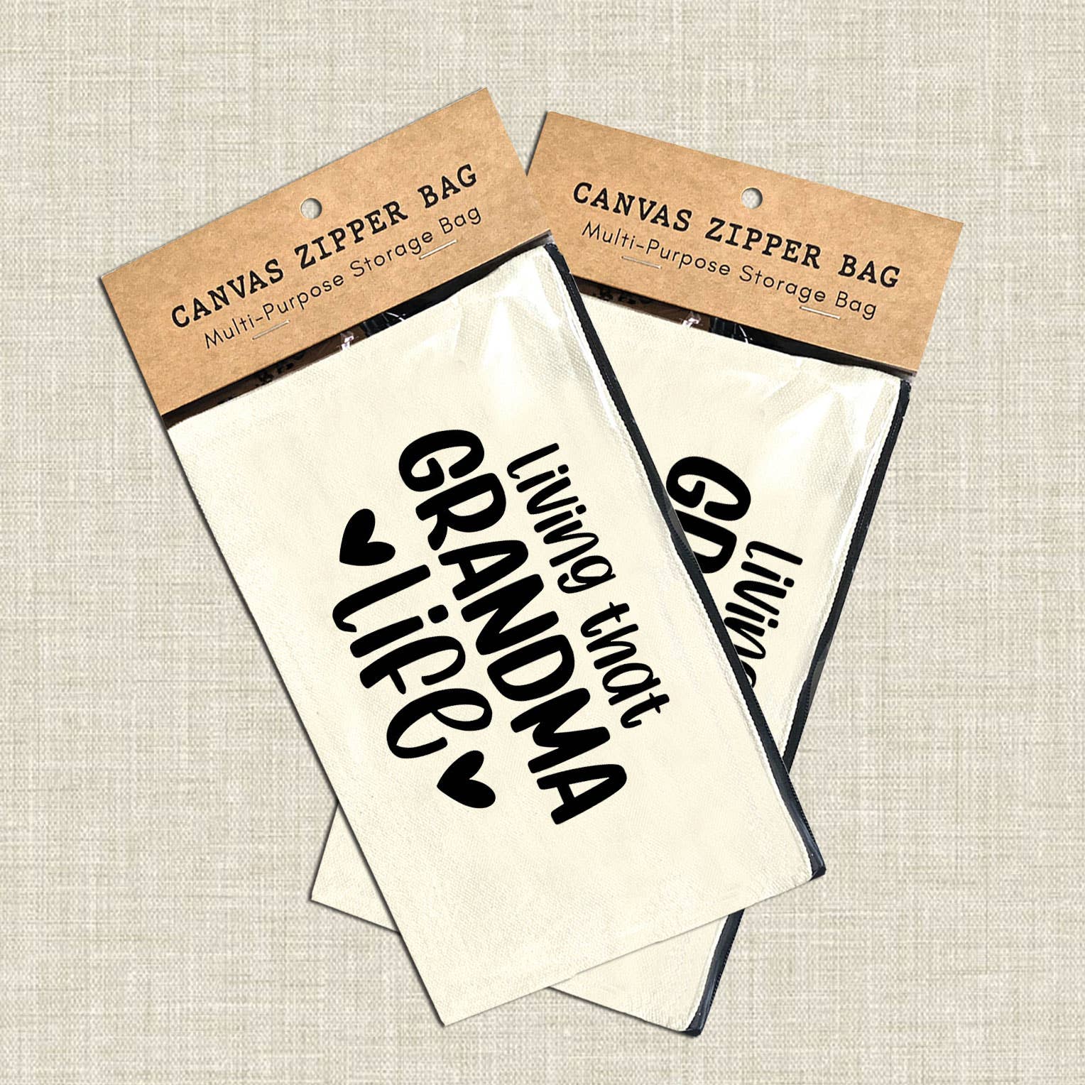 Each grandma canvas zipper bag is individually packaged with or without a header card. Bags are unlined. Fabric is light beige canvas. Zipper is black.