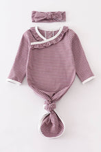 Your little one will be the most fashionable infant on the block in this adorable purple stripe ruffle baby gown! Soft, lightweight, and gentle for baby's skin, this darling two-piece is perfect for any season. They'll be stylish and comfy, and you'll be the envy of all your mommy friends! 🤩